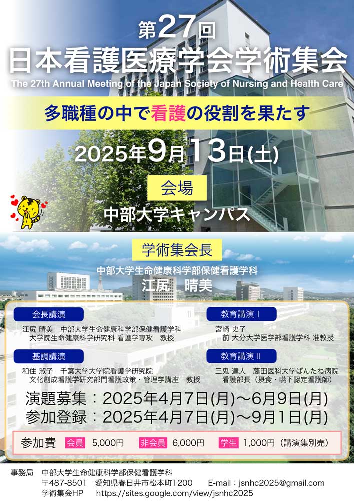→ 第27回日本看護医療学会学術集会のご案内日本看護医療学会“公式ロゴ”の募集について