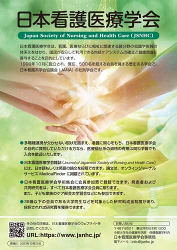 本会ホームページの全面更新にともない、日本看護医療学会の広報フライヤーを発行しました。
