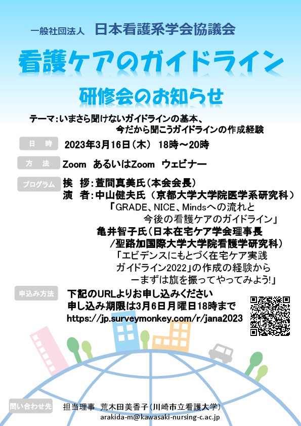 - ■【JANA】看護ケアガイドラインに関する学習会のご案内(2023/01/10UP)