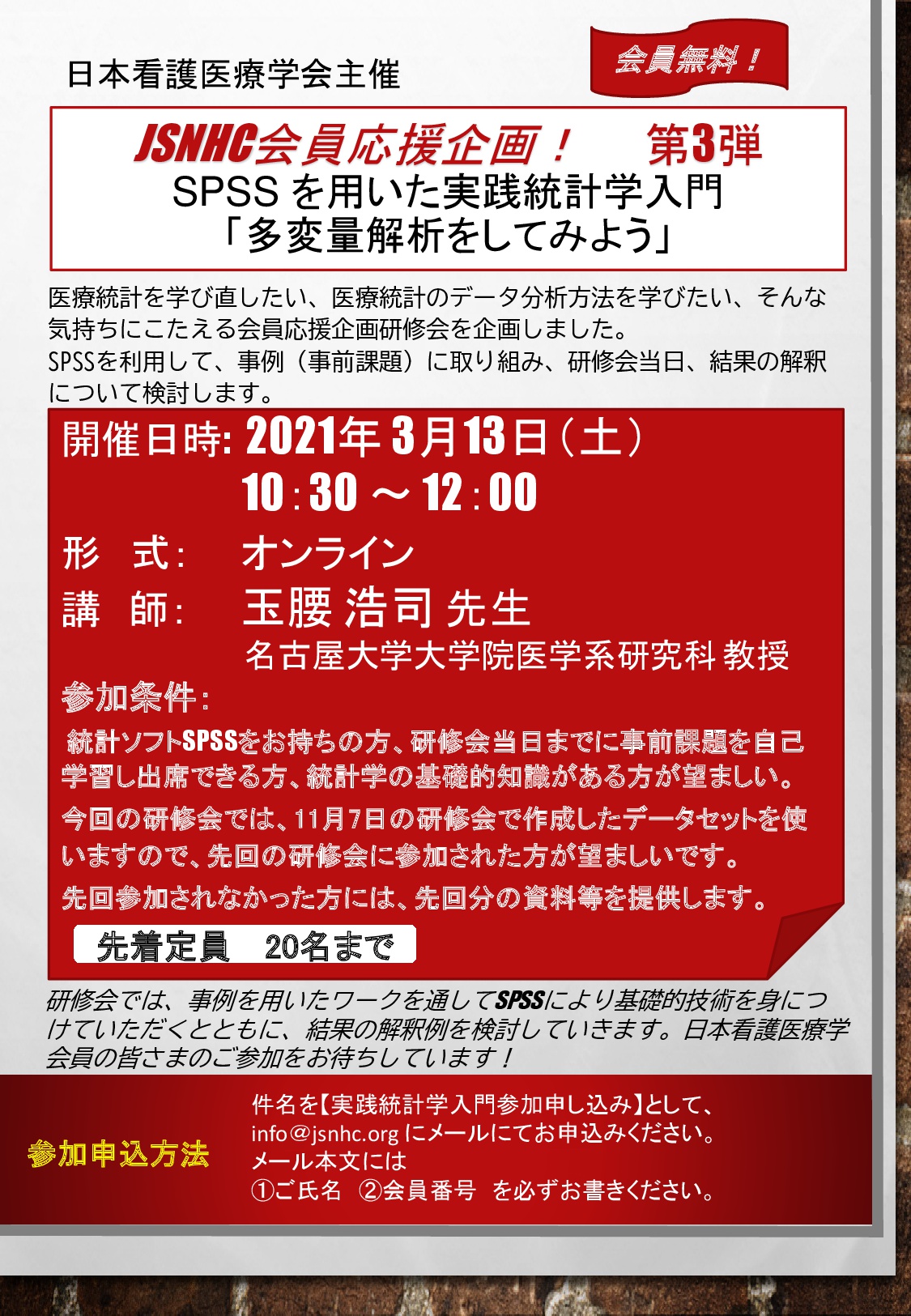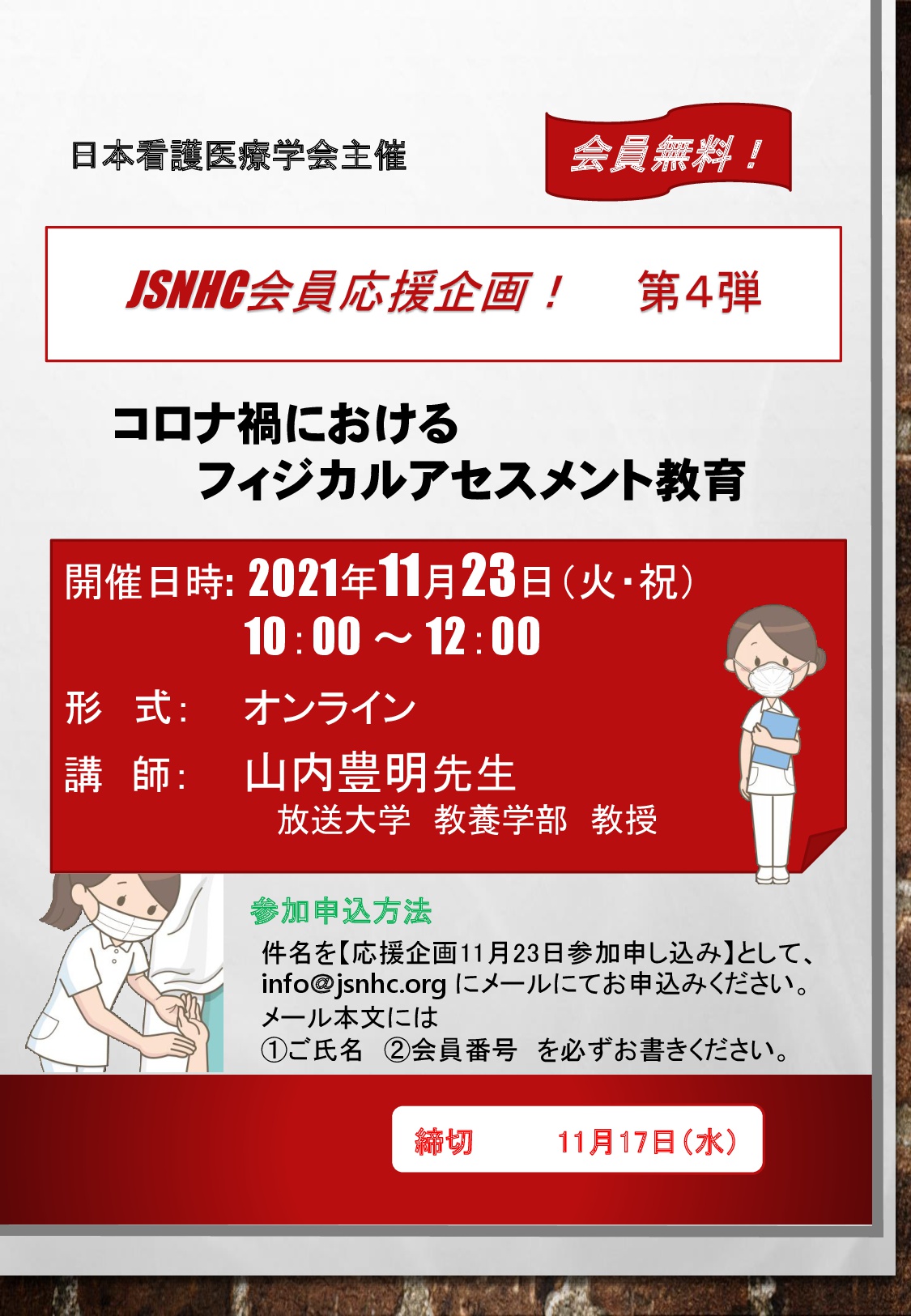 JSNHC会員応援企画 第5弾 研修会のお知らせ(2023/02/01UP)